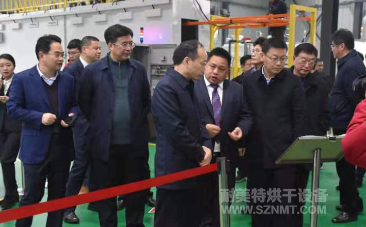 2020年12月9日上午,湖南省常德市委書(shū)記、市人大常委會(huì)主任周德睿,市委副書(shū)記、市長(zhǎng)鄒文輝率領(lǐng)全市“開(kāi)放強(qiáng)市 產(chǎn)業(yè)立市”流動(dòng)現(xiàn)場(chǎng)會(huì)蒞臨湖南省耐美特智能烘干工業(yè)設(shè)備有限公司視察指導(dǎo)工作。縣委書(shū)記車世忠,縣委副書(shū)記、縣長(zhǎng)周功表等一行陪同。