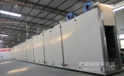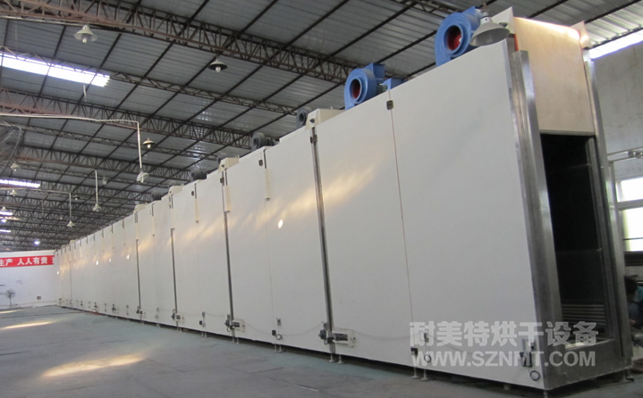 箱體內(nèi)膽尺寸:寬0.9米*高2.9米*長(zhǎng)40米; 箱體共分為10段,每段長(zhǎng)度=4米,其中預(yù)熱2段,烘干4段,程序降溫3段,強(qiáng)制冷卻1段;